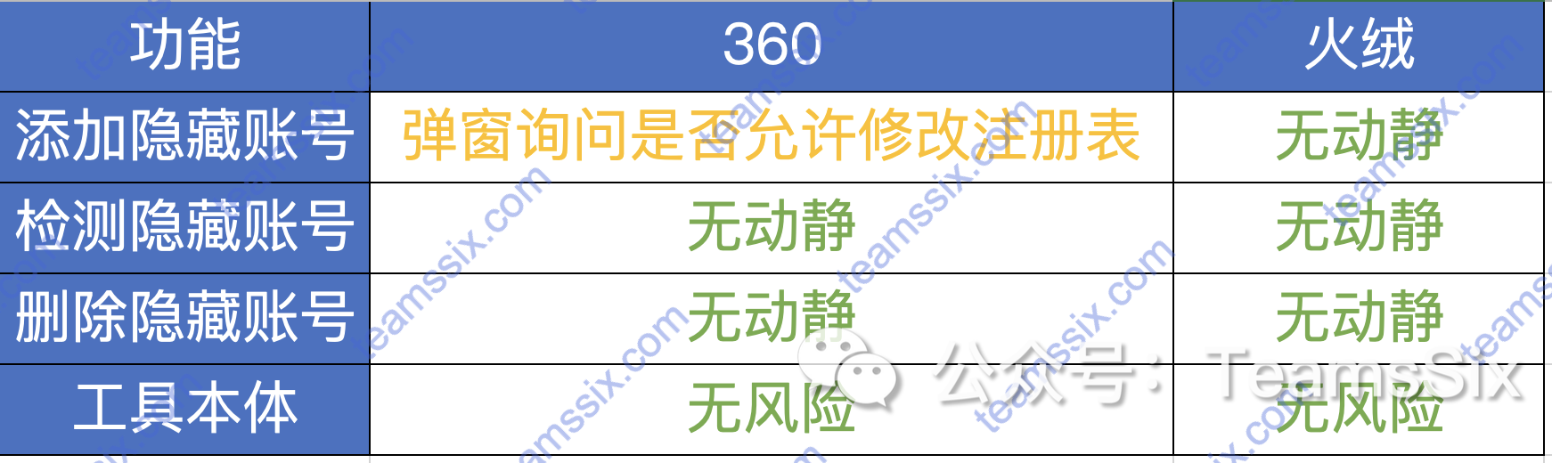 因为在工具里是利用 Windows API 创建的用户,所以天然具有一定的免杀能力,不过因为工具里需要对注册表进行操作,所以还是会被杀软发现。